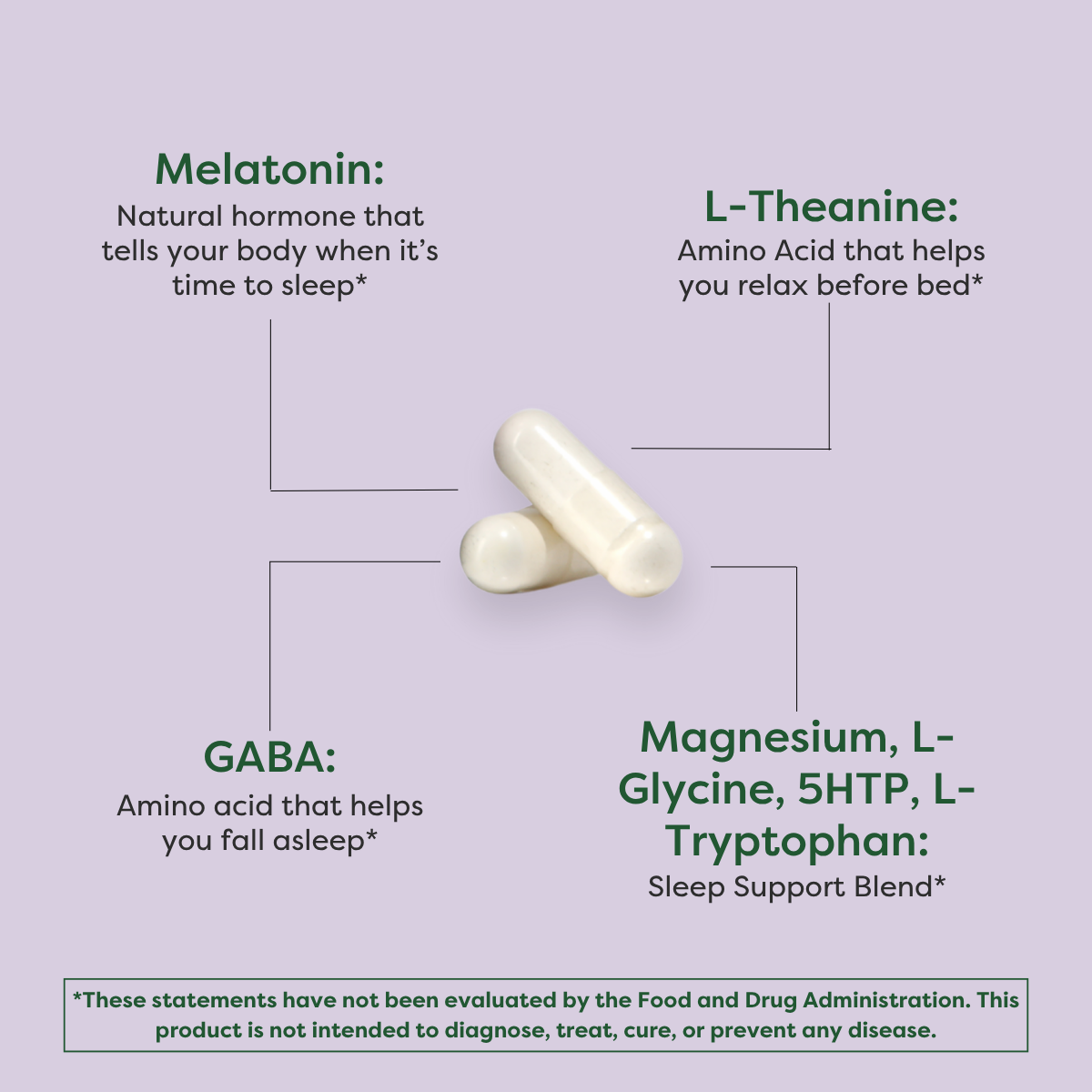 Drift off into dreamland. Our sleepy-time supplement contains a soothing blend of L-Theanine to help you relax, Melatonin to let your body know when it’s time for bed and GABA to help you get a better night’s rest.*